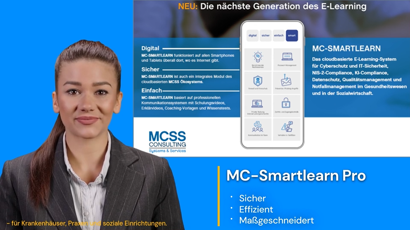 MC-SMARTLEARN ist ein innovatives E-Learning-System, das Mitarbeitende schnell, flexibel und ressourcenschonend schult, optimiert für Smartphones und Tablets. Rund 80% der Störfälle in der Informationssicherheit entstehen durch den „Faktor Mensch“ (Studie VWW), und über 65% der Mitarbeitenden sind laut BSI unzureichend sensibilisiert. MC-SMARTLEARN greift genau hier an: praxisnahe, verständliche und kontinuierliche Schulungen minimieren dieses Risiko effektiv.